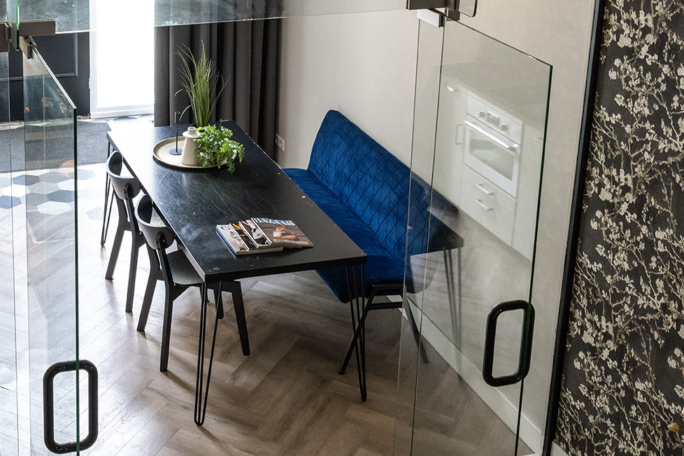 Pal naast de villa vind je het Koetshuis, een tot appartement omgetoverd voormalig koetsiershuis. Hier overnacht je in huiselijke sfeer én in alle luxe met wel vier personen. Het 40m2 tellende verblijf heeft een privé-ingang en is voorzien van een prachtige visgraat vloer en een compleet uitgeruste woonkeuken met schitterende glazen deuren. Slapen doe je in het Koetshuis natuurlijk alsof je blauw bloed hebt: in het queen size bed op de romantische vide en in het heerlijke tweepersoonsbed beneden.